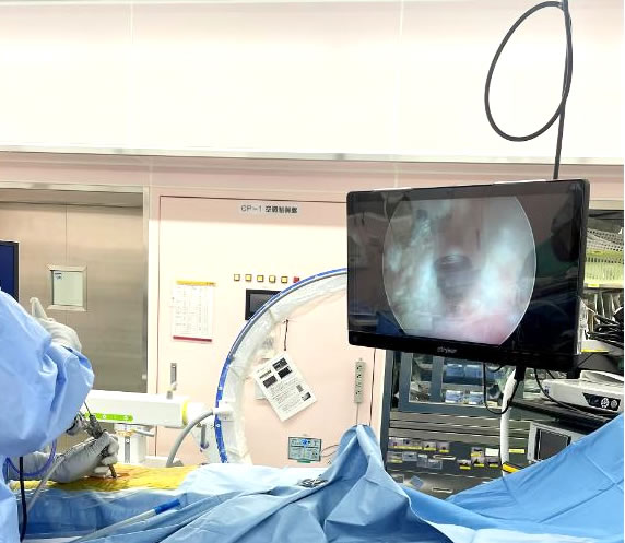 左右どちら の腰から 下肢の痛みであれば、1ポータルでの手術を施行しています。