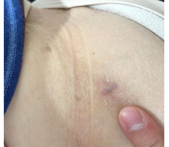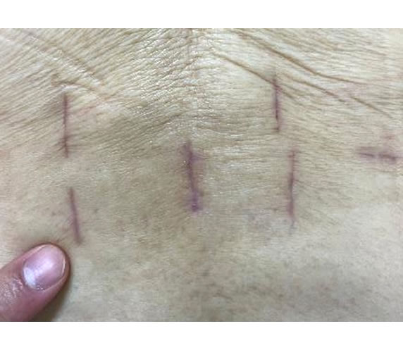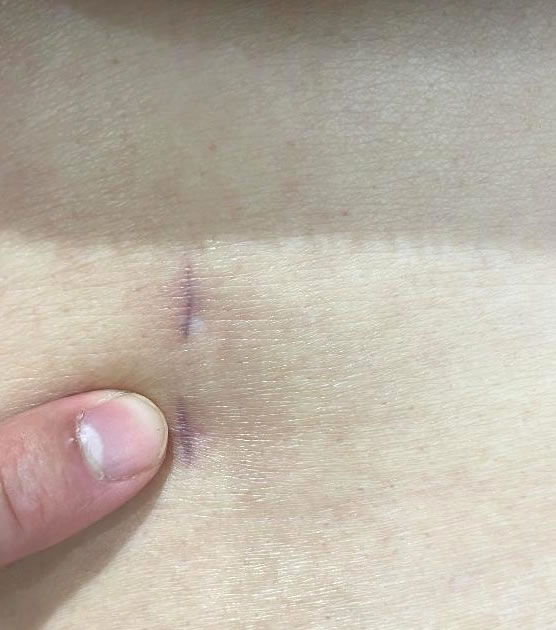 2.ポータル脊椎内視鏡手術の様子と創部