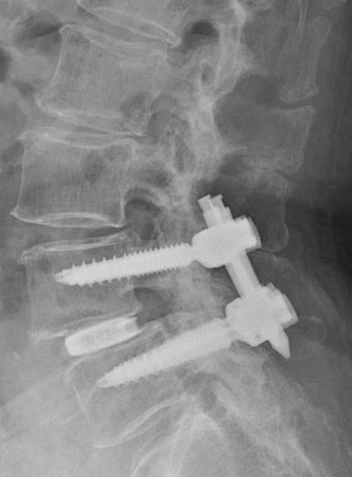 そのような患者さんには椎弓切除のみでは症状の改善が期待できないため、内視鏡下椎体間固定を行います。